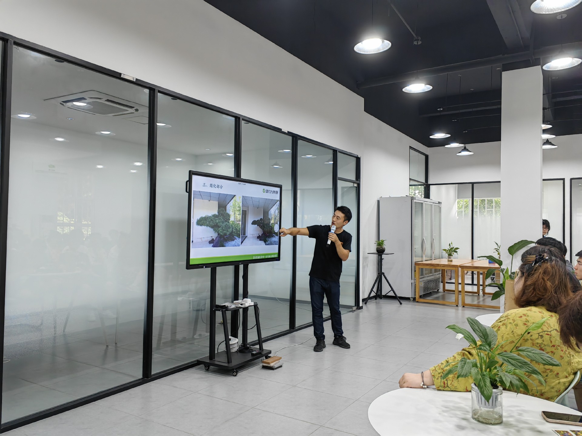 其次,公司项目负责人结合详细介绍了别墅庭院景观施工的流程、技术要点以及庭院植物养护的经验和技巧。